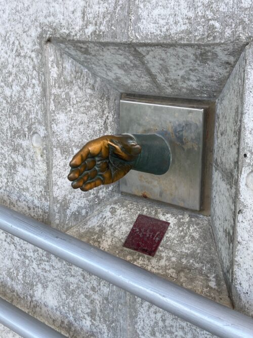 ■来場者を握手で迎える石ノ森章太郎の右手のブロンズ