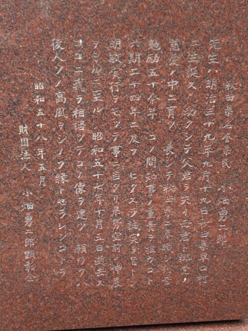小畑勇二郎顕彰会が、全国に広く募金を募り、その財源によって、建立されたものです。