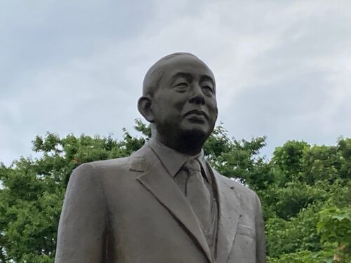 県の主要施設の、こんなに目立つ場所に、ある時代の知事の銅像が、設置されているのは、珍しいことだと思います。