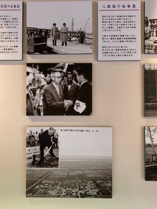 1955年(昭和30年)に就任した、小畑知事は、八郎潟干拓を県政の最重点政策とし、湖岸の漁業関係者への補償問題の解決に取り組みました。
