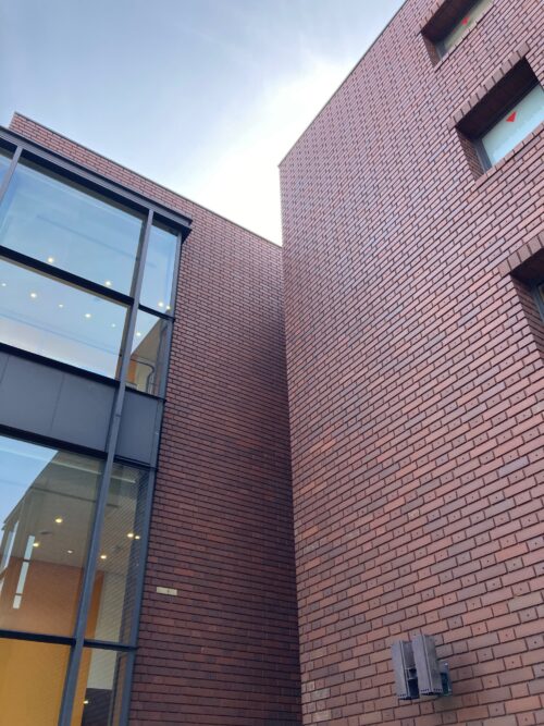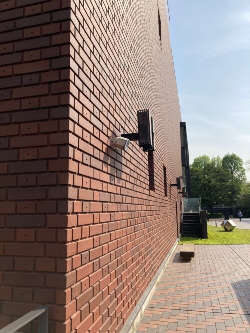 東京都美術館の外壁の、ほぼ全て、焼きレンガ色の打込みタイル工法で、造られています。
