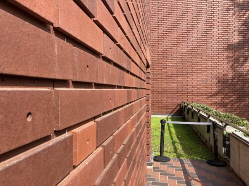 また、『耐久性を考慮した、素材、構法』という考え方は、何と言っても後期の前川建築の象徴である「打込みタイル工法」につながっています。「打込みタイル工法」は、前川自身が、こだわりをもって開発したものです。