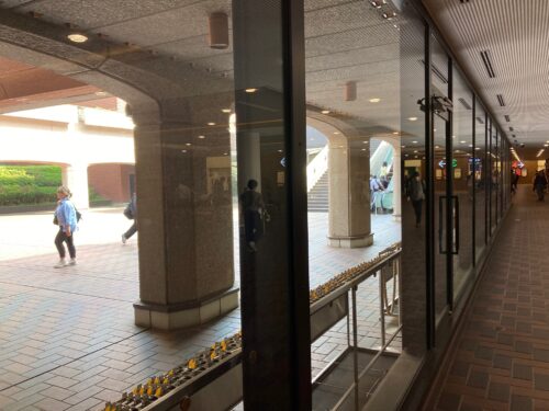 ■地下1階の正面入口の中から中央広場を望む